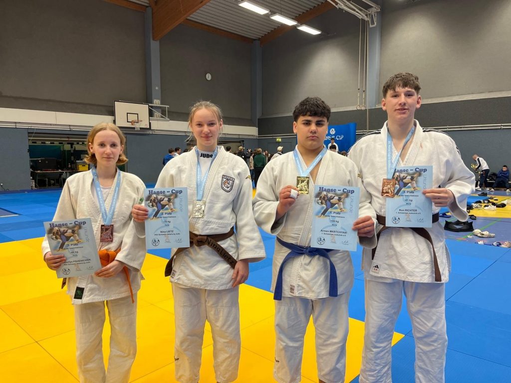 Den Auftakt beim 22. Hanse-Cup machten aber die jüngsten Sportlerinnen und Sportler der U11. Hier erkämpften sich Tilda Trockels (-24 kg) sowie Levin Bischoff (-30 kg) nach guten Auftritten in ihren Gewichtsklassen jeweils die Bronzemedaille. Auch Theodor Trockles (-42 kg) zeigte starke Kämpfe. Zwar blieb ihm in seinen drei Begegnungen ein Sieg verwehrt, doch zwei Niederlagen fielen erst nach Kampfrichterentscheid, sodass er sich ebenso achtbar präsentierte. Ebenfalls Bronze gewann Johannes Güdokeit (U15, -50 kg), der seinen Auftaktkampf zwar verlor, anschließend in der Trostrunde die Matte aber viermal als Sieger verließ. Für Viktoriya Pshenichna (U18, -44 kg) gab es ebenso eine Bronzemedaille.